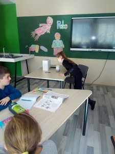 Cele menționate anterior sunt demonstrate de o lecție de limba engleză cu elevii din clasa a 4-a, liceul “Vasile Alecsandri”, ce a avut loc la data de 4 noiembrie curent. Profesorul Natalia Ursu a avut drept scop să formeze la elevi abilități digitale precum crearea prezentărilor cu ajutorul instrumentelor web: SMORE, CANVA, WORD-ART.