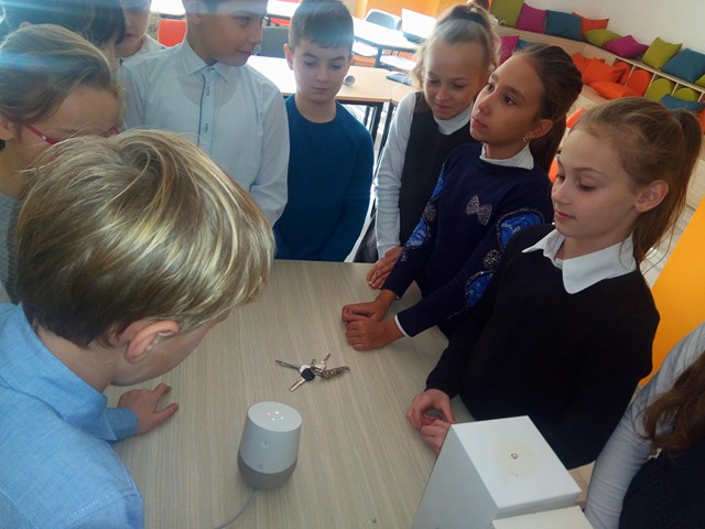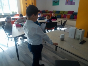 Elevii au creat prezentări creative și originale fiind ghidați atât de profesor cât și de părinți. Tema prezentărilor a fost “What do they do?” ( în traducere din limba engleză “Ce fac ei?”, despre profesii). După explorarea prezentărilor despre profesii, elevii au fost foarte curioși să afle ce le va spune Google Assitant Home (boxa inteligentă) despre diferite profesii și acțiunile acestor profesii în țările vorbitoare de limba engleză. Întrebările au fost relevante, iar curiozitatea a atins cote maxime în rândul copiilor.