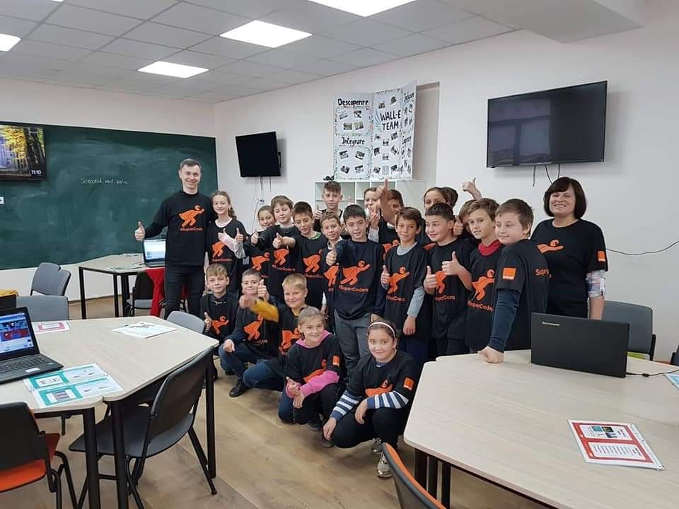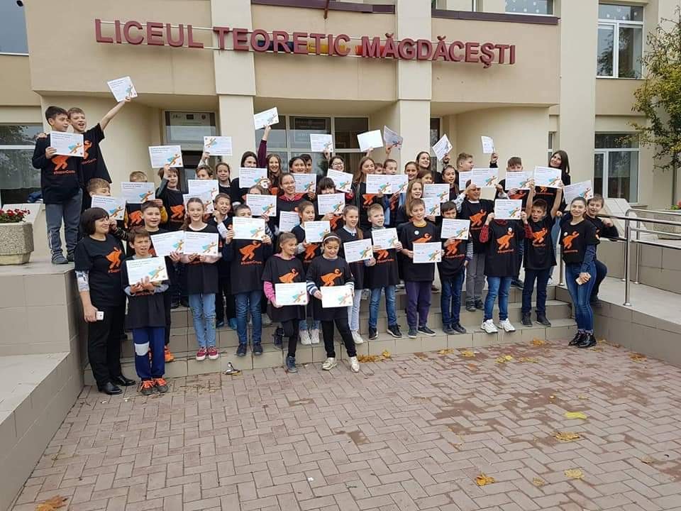 La workshop-ul care a avut loc sâmbătă 26 octombrie, au participat 41 de copii, entuziasmați și pasionați de #coding, 2 profesori, Braniște Angela și Zinaida Uritu, 2 voluntari din partea companiei Orange, Alex Andru și Natalia Bugneac, cărora le mulțumim pentru implicare, susținere și ajutor!
